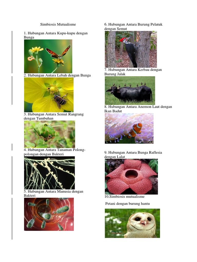 Pengertian simbiosis mutualisme adalah sebuah interaksi antara dua makhluk hidup yang menguntungkan kedua belah pihak. Simbiosis pengertian mutualisme parasitisme komensalisme amensalisme contoh. Interaksi antara kupu kupu dengan bunga interaksi antara lebah dengan bunga interaksi antara kerbau dengan burung j. Contoh simbiosis mutualisme adalah. Simbiosis mutualisme simbiosis berasal dari bahasa yunani συμβίωσις yang artinya hidup bersama berasal dari kata σύν bersama dan βίωσις hidup yaitu semua jenis interaksi biologis jangka panjang dan dekat antara dua organisme biologis yang berbeda beda baik itu mutualisme komensalisme atau parasitisme. 10 contoh simbiosis mutualisme.