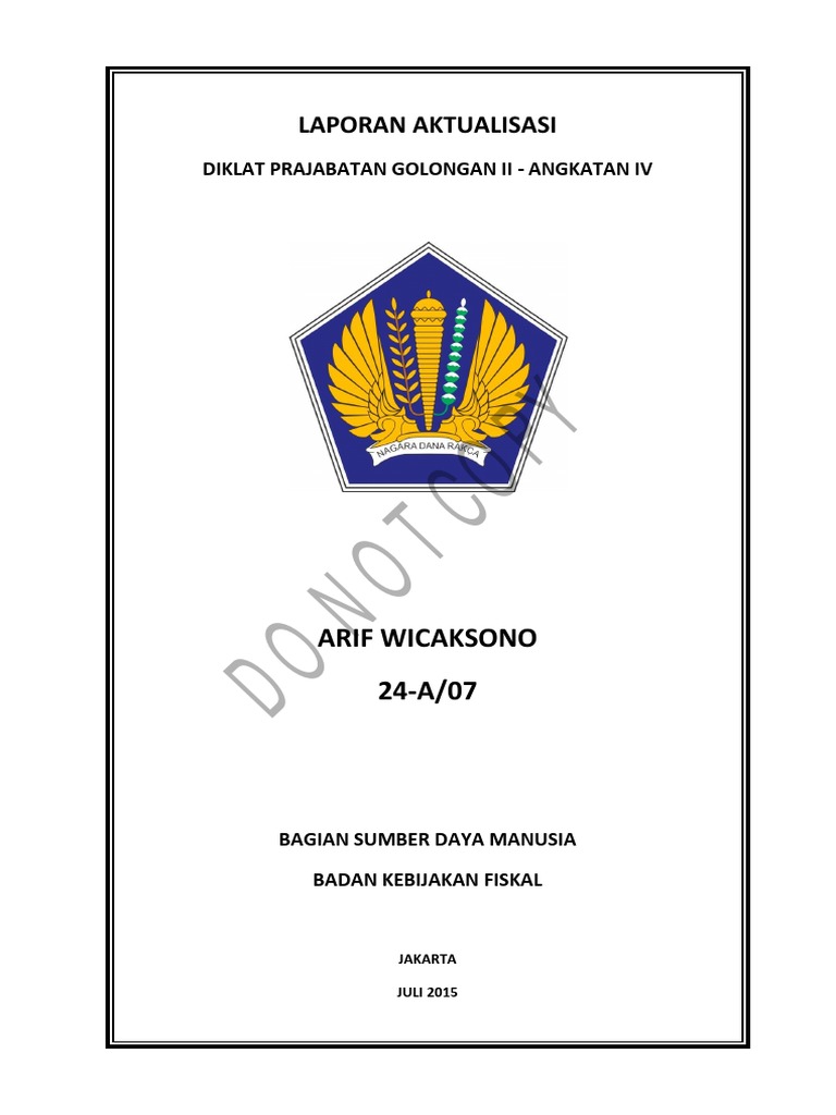 Contoh aktualisasi prajabatan cpns. Merujuk pasal 63 ayat 3 dan ayat 4 undang undang nomor 5 tahun 2014 tentang aparatur sipil negara pns wajib menjalani masa percobaan yang dilaksanakan melalui proses diklat terintegrasi untuk membangun moral. Soal soal ujian latsar cpns berisikan tentang mata pelatihan yang telah dilaksanakan pada kegiatan sebelumnya. Laporan aktualisasi nilai nilai dasar aneka pada sub bidang perencanaan evaluasi dan pelaporan di dinas pendidikan pemuda olahraga pariwisata dan kebudayaan sebagai tugas akhir diklat prajabatan. Laporan aktualisasi merupakan format laporan terbaru tahun 2017 dengan sistem aktualisasi off campus 39 hari dan on campus 90 hari. Download contoh rancangan aktualisasi latsar asnpns jabatan guru download rancangan aktualisasi laporan rancangan aktualisasi pelatihan dasar asnpns diklat pelatihan dasar golongan iii angkatan vi pemerintahkabupaten mamuju tengah kerjasama dengan pusat kajian dan pendidikan dan pelatihan apratur ii lembaga administrasi negara tahun 2016. Tujuan aktualisasi peserta diklat prajabatan golongan iii diharapkan mampu mengaktualisasikan nilai nilai dasar profesi pns di tempat tugastempat magang masing masing serta mampu menganalisis dampak apabila kelima nilai dasar tersebut tidak diimplementasikan.