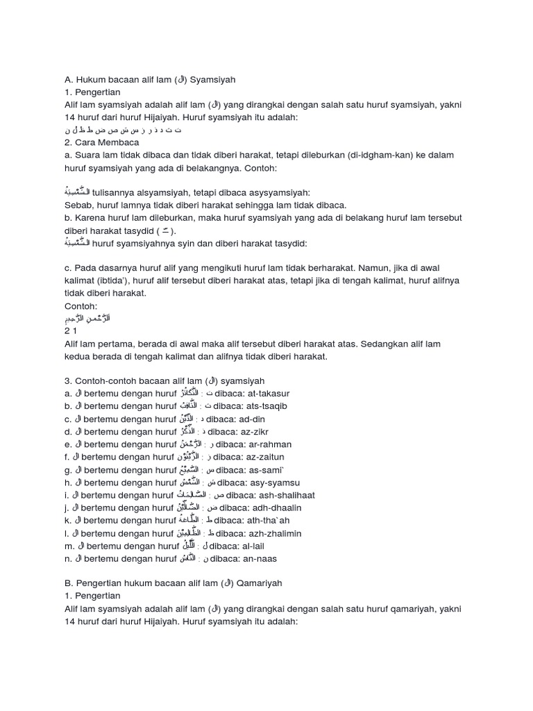 Pengertian alif lam qamariah. Contoh contoh dari hukum alif lam syamsiah diatas kami ambil dari surat surat pendek juz amma dan juga beberapa surat dalam al quran supaya kita semua dengan mudah mempelajari tentang alif lam khususnya alif lam syamsiah.