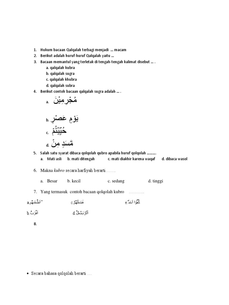 Halaman 52 contoh qalqalah sugra. Pengertian qalqalah sugra dan kubra penting untuk anda ketahui bagi anda yang sedang belajar mengaji. Hukum bacaan qalqalah sugra. Qalqalah kubra qalqalah besar qalqalah besar adalah huruf qalqalah yang dibaca sukun yang berada pada akhir kata atau ayat baik karena memang berharakat sukun ataupun fathah kasrah dammah dan tanwin tetapi dibaca waqaf. Untuk mengingat kembali pelajaran tajwid tentang pengertian dan macam macam qolqolah di sekolah tidak ada salahnya jika saya share kepada sahabat sekalian di blog ini meskipun sudah ada yang mengshare sebelumnya. Bacaan qalqalah sugra bacaan qalqalah sugra terjadi jika salah satu dari lima huruf qalqalah berharakat sukun dan bertempat di tengah kata.