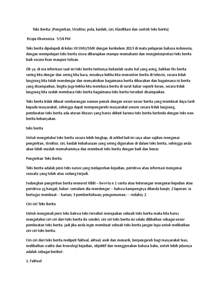 Contoh Teks Berita 5w 1h Dalam Bahasa Indonesia Bahasa
