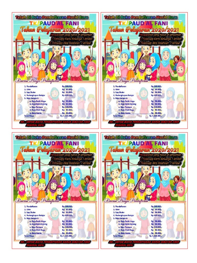 Download contoh brosur penerimaan siswa baru keren format cdr sobat 4corel sekalianbagi sobat yang bingung mikirin ide buat desain brosur penerimaan siswa baru mungkin postingan ini akan sangat membantu. Download contoh brosur penerimaan siswa baru paud buatan sendiri baik untuk tk kb tpa sps mapu lembagabiasanya yang digunakan dalam menginformasikan pmb ini sekolah memakai media spanduk brosur selebaran banner pamflet dan sejenisnya. Download 4 template brosur penerimaan peserta didik baru sesuai jenjang pendidikan. Contoh brosur penerimaan siswa baru tk contoh brosur tk brosur ppdb tkcdr brosur penerimaan siswa baru taman kanak kanak download brosur tk islamcdr brosur adalah media promosi yang digunakan untuk mengenalkan sekaligus memasarkan. Brosur penerimaan siswa biasanya dibuat dan disebarkan di awal tahun ajaran paud. Rumah btn cikal bakal tkit tpq baitul aini sebelum mendirikan sebuah sekolah atau taman kanak kanak tk paud.