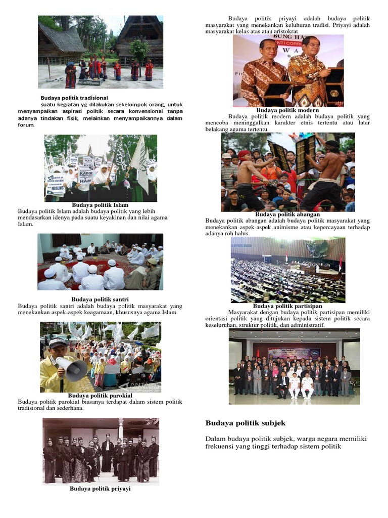 Contoh budaya politik parokial. Tidak mengikuti pemilu golput. Contoh budaya politik parokial dalam kehidupan sehari hari yang selanjutnya yaitu satu orang pemimpin menjadi pemimpin bagi semua bidang kehidupan. Pengertian budaya politik parokial adalah suatu budaya dimana tingkat partisipasi politik masyarakatnya masih sangat rendah. Politik parokial pengertian budaya ciri kaula partisipan para ahli. Budaya politik parokial merupakan tipe budaya politik yang paling rendah. Artinya pemimpin adat juga merupakan orang yang memutuskan akan seperti apa kehidupan perpolitikan dan perekonomian di daerah tersebut.