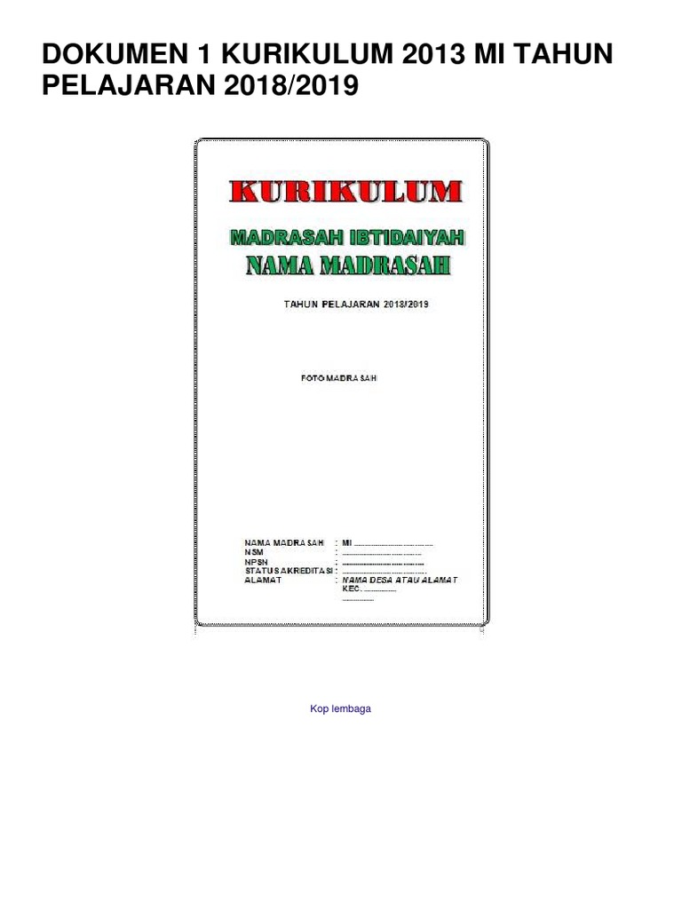 Contoh dokumen 1 kurikulum 2013. Madrasah sangat membutuhkan adanya standar dalam menyusun dokumen 1 madrasah sehingga memiliki standar sama setiap madrasahbuku dokumen 1 madrasah ini harus diperbaharuan sesuai dengan kebijakan pemerintah terbaru. Contoh dokumen 1 kurikulum 2013 untuk jenjang paud download format dokumen 1 paud kurikulum 2013 digunakan sebagai administrasi untuk sekolah dalam rangka menyusun kurikulum serta pemenuhan standar isi bila sekolah melaksanakan akreditasi sekolah. 61 tahun 2014 dijelaskan bahwa ktsp adalah kurikulum operasional yang disusun oleh dan dilaksanakan di masing masing satuan pendidikan. Pencapaian kompetensi yang dirancang dalam dokumen kurikulum oleh seluruh peserta didik. Contoh dokumen 1 kurikulum 2013 sdmi sesuai kemdikbud program kurikulum 2013 pada tahun 2016 saat ini sedang di sosialisaikan dengan proses tahapan kebijakan kurikulum untuk jenjang sekolah dasar dimulai pada rpp silabus kurikulum 2013 sd revisi 2016 dan perangkat administrasi guru kurikulum 2013 sebagai kewajiban yang harus dikerjakan seorang guru pada proses sebelum dan sesudah kegiatan. 1 isi atau konten kurikulum adalah kompetensi yang dinyatakan dalam bentuk kompetensi inti ki mata pelajaran dan dirinci lebih lanjut ke dalam kompetensi dasar kd.