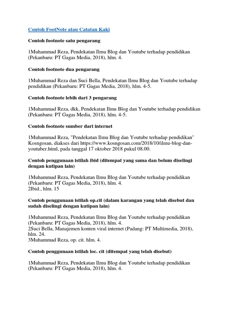 Makalah beserta footnote catatan kaki makalah ijarah sewa menyewa dalam islam makalah dasar tujuan dan manfaat pendidikan islam jumat 11 april 2014. Footnote atau catatan kaki merupakan catatan pada bagian bawah halaman yang bertujuan untuk menyatakan sumber suatu kutipan pendapat pernyataan atau ikhtisar. Karena dengan memperhatikan permasalah tersebut kita akan mengetahui bagaimana cara penulisan catatan kaki yang benar sesuai dengan kaidah penulisan yang sesuai. 1 latar belakang masalah. Dasar tujuan dan manfaat pendidikan islam.