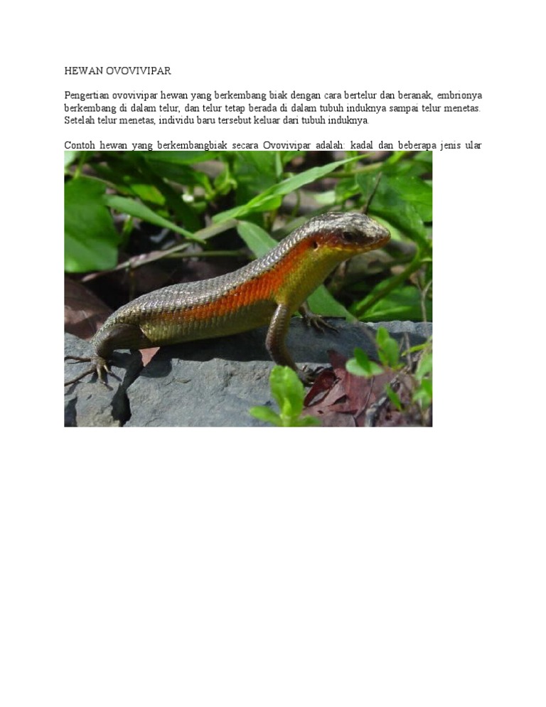 Ia berkembang biak dengan cara bertelur namun telur tersebut tidak dikeluarkan sebelum menetas. Ciri contoh dan penjelasan.