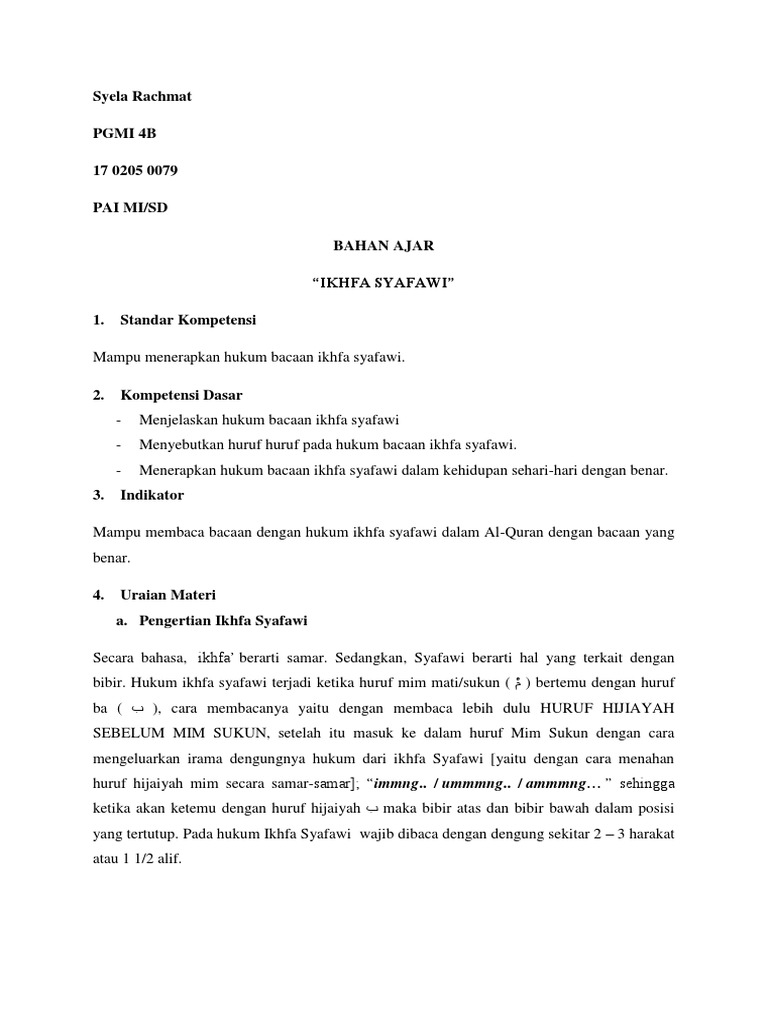 Tetapi di dalam kitab al quran nyaris tidak ditemukan hukum ikhfa syafawi yang ada dalam suatu kata saja. Sedangkan dalam membacanya hukum ikhfa syafawi ini tetaplah wajib dibaca dengan dengung sekitar 2 3 harakat atau 1 12 alif sebab bila hukum ikhfa syafawi ini. Contoh hukum bacaan ikhfa syafawi di surat al kahfi sebagai berikut. Hukum bacaan ikhfa syafawi. Contoh ikhfa syafawi dalam surat al isro 1. 50 contoh ikhfa syafawi beserta surat dan ayatnya.