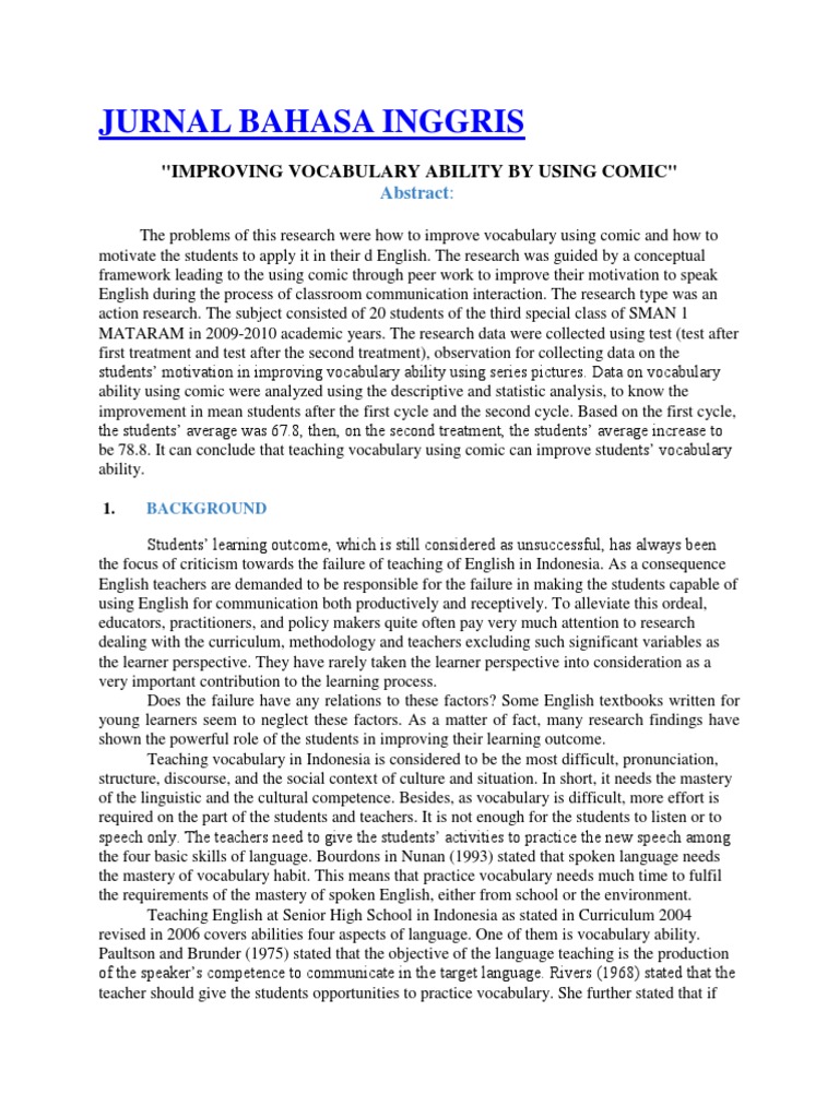 Kumpulan jurnal bahasa indonesia lengkap pdf download. Kumpulan contoh jurnal bahasa inggris terbaru free download as word doc doc docx pdf file pdf text file txt or read online for free. Konsep dan jenis variabel variabel independen va. Jurnal merupakan suatu kutipan dari laporan. Berikut ini adalah contoh jurnal bahasa inggris tentang reading yang bisa anda unduh secara gratis dengan menekan tombol download yang ada pada tautan dibawah ini. Kumpulan jurnal bahasa indonesia lengkap pdf download.