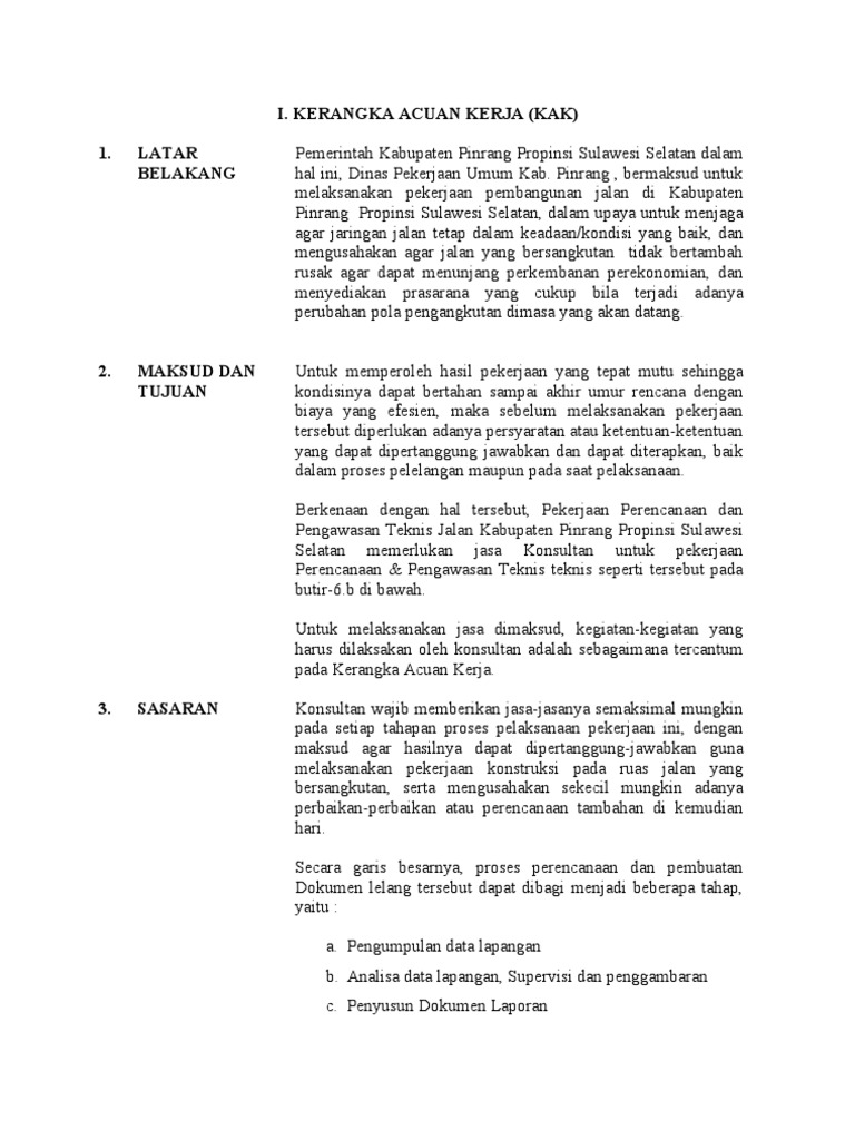 Pemerintah kabupaten magelang u nit esselon. Tujuan kak adalah untuk mendukung agar usulan program kegiatan tepat sasaran sehingga terwujudnya kondisi yang mantap baik dan terawat pada. Dari pengertian ini terlihat bahwa swakelola bersifat mandiri dan dikerjakan oleh diri sendiri bukan melalui penyedia. Contoh formulir pelaksanaan pekerjaan swakelola dan pelaksanaan pekerjaan dengan penyedia barang jasa a1. Dalam kak tercakup latar belakang maksud dan tujuan indikator keluaran dan keluaran cara pelaksanaan kegiatan pelaksana dan penanggung jawab kegiatan jadwal kegiatan dan biaya kegiatan. Contoh kegiatan dalam dpa tersebut di atas dapat dipecah menjadi dua yaitu.