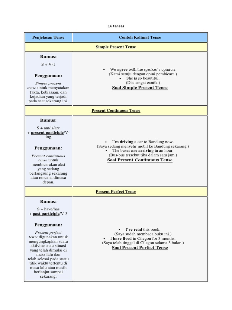 Berikut rangkuman 16 tenses bahasa inggris yang sudah kami rangkum untuk kamu. Untuk sahabat yang masih mencari cari kumpulan kalimat passive voice dalam berbagai jenis tenses dalam bahasa inggris maka sahabat dapat langsung melihat contoh contoh kalimat dibawah ini. 16 tenses rumus dan contoh kalimat part 1 menguasai tenses dalam bahasa inggris sangat penting. Per bulan 100 ribu. Dalam bahasa inggris ada banyak sekali jenis kalimat yang perlu kita pelajari dan beberapa diantaranya adalah kalimat aktif dan juga kalimat pasif. Berdasarkan situasi di atas dapat saya simpulkan bahwa kalimat aktif dan kalimat pasif memiliki ciri sebagai berikut.