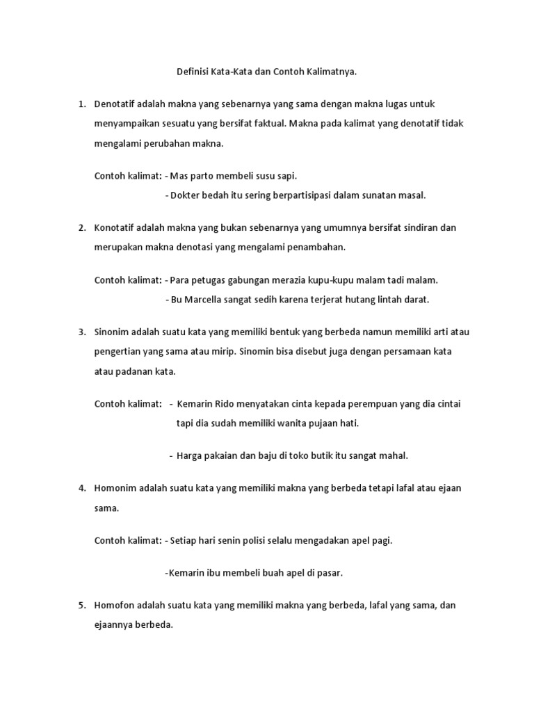 Untuk mengetahui jawabannya kalian harus mempelajari materi yang saya paparkan dibawah ini. Makna denotasi merupakan makna sebenarnya dari suatu kata sedangkan makna konotasi adalah makna kiaas atau tidak sebenarnya yang terkandung dalam suatu kataagar kita lebih memahami kedua makna kata itu berikut ditampilkan beberapa contoh keduanya yang ditampilkan dalam format kalimat sebagaimana yang. Semoga bermanfaat dan dapat dijadikan acuan dalam mempelajari pelajaran bahasa indonesia. Contoh 10 kalimat denotasi dan konotasi dalam bahasa sunda 2231508 1. Pengertian dan contoh makna denotatif dan konotatif dalam bahasa indonesia kita sering mendengar pelajaran mengenai makna konotatif dan denotatifbagi anda yang belum paham apa itu makna denotatif dan konotatif bisa membaca artikel berikut ini yang saya ambil dari buku cermat berbahasa indonesia untuk perguruan tinggi karangan e. 37 contoh kalimat denotasi pengertian ciri dan perbedaan untuk pembahasan kali ini kami akan mengulas mengenai kalimat denotasi yang dimana dalam hal ini meliputi pengertian ciri perbedaan dan 37 contoh nah agar lebih dapat memahami dan dimengerti simak ulasan selengkapnya dibawah ini.