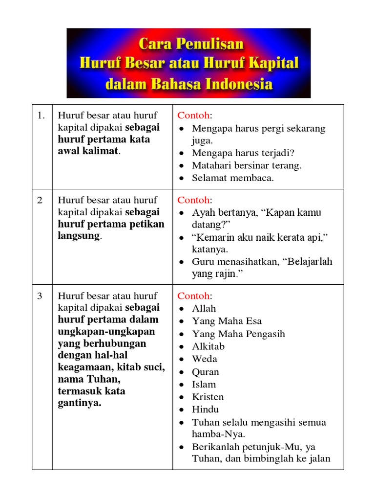 Penggunaan Huruf Kapital Dan Contohnya Menurut Eyd Jelinfo