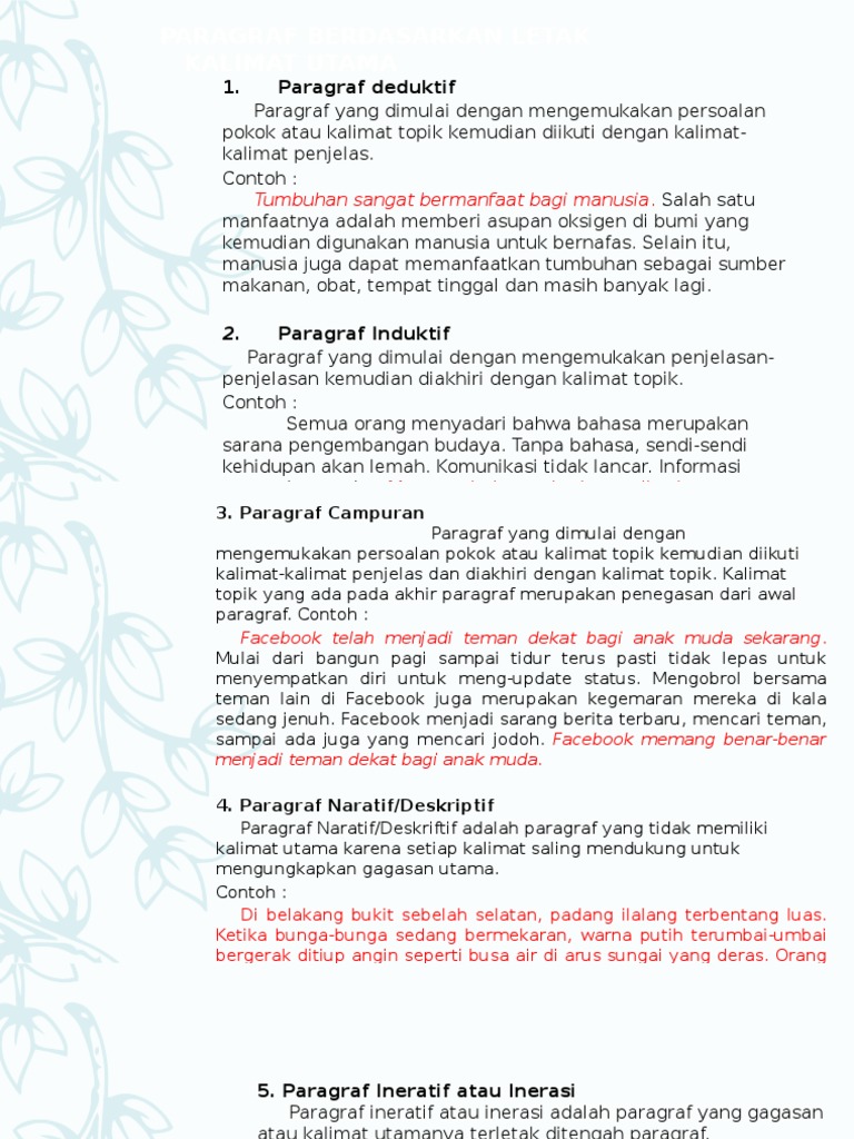 Ide pokoknya adalah hati hati mendoakan anak. Kalimat utama dan kalimat penjelas adalah unsur unsur penting dalam jenis jenis paragraf terutama untuk paragraf induktif paragraf deduktif paragraf ineratif dan paragraf campurankalimat utama sendiri merupakan kalimat yang berisi pokok utama sebuah paragraf. Umum kalimat penjelas khusus kalimat penjelas khusus kalimat utama. Oleh karena itu kami akan membahas mengenai contoh kalimat utama dengan tujuan kalian dapat memahami atau menjadi lebih paham terhadap kalimat utama. Kalimat utama yang terdapat pada paragraf di atas urutan nomor lima untuk kalimat lainnya ada urutan satu dua tiga empat adalah salah satu kalimat penjelas. Contoh kalimat utama di awal paragraf deduktif memasuki arus globalisasi beberapa hal terkait iptek yang semakin canggih menjadi boomerang bagi masyarakat indonesia.