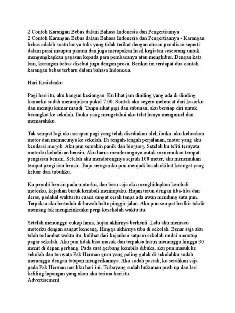 Contoh karangan bahasa indonesia. 7 contoh kerangka karangan pengertian fungsi manfaat kriteria bentuk pola langkah syarat untuk pembahasan kali ini kami akan mengulas mengenai kerangka karangan yang dimana dalam hal ini meliputi contoh pengertian fungsi manfaat kriteria bentuk pola langkah dan syarat nah agar dapat lebih memahami dan dimengerti simak ulasan selengkapnya dibawah ini. Proses ini menyebabkan berbedanya bahasa indonesia saat ini dari varian bahasa melayu yang digunakan di riau maupun semenanjung malaya. Contoh karangan bahasa jepang mempelajari ilmu bahasa tentu tidak terlepas dari kegiatan literasi yakni menulis dan membacabukan hanya dalam bahasa indonesia bahasa bahasa lainnya pun tentu akan melakukan hal yang serupa. Karangan sendiri memiliki beberapa jenis seperti karangan narasi deskripsi oposisi eksposisi argumentasi dan lain sebagainya. Contoh karangan deskripsi singkat dalam bahasa indonesia karangan deskripsi adalah salah satu dari jenis jenis karangan. Contoh karangan bebas tentang lingkungan dan liburan sebelum memberikan contoh karangan bebas perlu kita ketahui dulu apa itu karangan bebaskarangan bebas adalah salah satu bentuk karya tulis yang tidak terikat aturan.