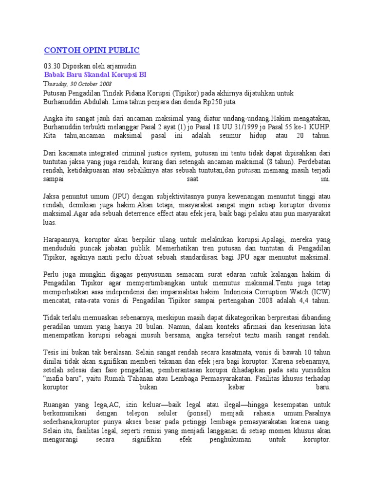 Contoh kasus opini publik. Opini publik yang membahas isu terhangat dari isu politik hukum kriminal dan peristiwa yang sedang berkembang. Pada contoh kasus yang dibahas dalam makalah ini yaitu penangkapan tersangka pembunuhan nasrudin zulkarnain yang tiada lain adalah antasari azhar dan teman temannya. Contoh analisis elemen pokok opini publik dalam kasus kpk vs polri pembetukan sebuah opini public selalu didasari dengan adanya sebuah fenomena yang terjadi dalam masyarakat atau publik itu sendiri. Contoh kasus opini publik perusahaan. Pengertian opini publik ciri karakteristik dan proses pembentukan opini publik terlengkap opini publik adalah pendapat dari kelompok masyatrakat atau sintesis dari pendapat dan didapatkan dari sebuah diskusi sosial dari berbagai pihak yang memiliki kaitan kepentingan. Jakartasmartinfo cultip dan center dalam sastropoetro 1987 menyatakan bahwa opini publik adalah sejumlah akumulasi pendapat individual tentang suatu isu dalam pembicaraan secara terbuka dan berpengaruh terhadap sekelompok orang.
