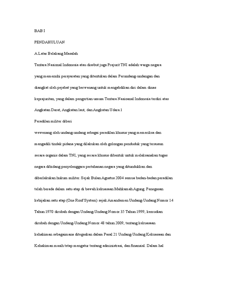 Hukum acara peradilan militer yang sampai saat ini masih dalam perdebatan terkait revisi yang akan dilakukan dengan kehendak untuk melakukan transplantasi hukum di negara lain yang menundukan militer kepada peradilan umum semoga tidak membuat system peradilan di indonesia malah menjadi terbebani dengan masuknya militer dalam yurisdiksi peradilan umum sebagaimana contoh yang dikemukakan oleh. Majelis hakim yang dipimpin letkol chk djoko sasmito dalam sidang hari kamis 5 september di pengadilan. Pengadilan militer di indonesia merupakan salah satu macam macam lembaga peradilan di indonesia yang ada dilingkungan peradilan militer. Contoh kasus tersebut merupakan salah satu kejahatan koneksitas yaitu kejahatan yang dilakukan bersama sama oleh mereka yang termasuk dalam lingkungan peradilan umum dan lingkungan peradilan militer yang diadili dan diperiksa oleh pengadilan dalam lingkungan peradilan umum kecuali jika menurut keputusan menteri pertahanan dan kemanan dengan persetujuan menteri kehakiman perkara itu harus. Berikut adalah contoh contoh kasus di berbagai pengadilan kasus dipengadilan negeri tata usaha militer dan agama.