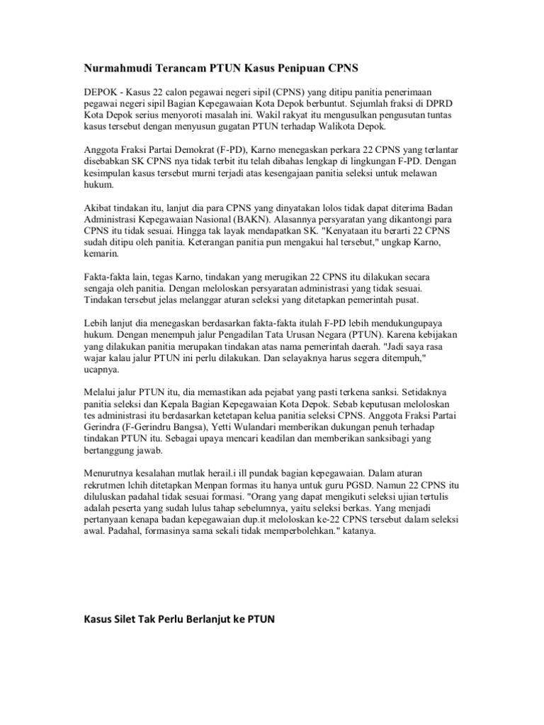 Bahwa kepemilikan surat warga atas tanah tersebut telah sesuai. Mereka memberikan dukungan kasus sengketa pilkada 2013 yang ada di kabupaten pamekasan. Director of public prosecutions 1946 dan amerika serikat dalam kasus iran hostages crisis 1979 1980. Oleh karena itu perlu suatu contoh analisa ka sus agar mampu memberi sedikit pemahaman dalam memahami penyelesaian sengketa tun ini. Pamekasan achmad syafii dan khalil asyari mendatangi kantor pengadilan tata usaha negara ptun surabaya di jalan letjen sutoyo medaeng waru sidoarjo. Contoh kasus dan putusan pengadilan tata usaha negara yang pertama berkaitan dengan pulau d salah satu pulau buatan yang penggarapannya dilaksanakan oleh pt kapuk naga indah.