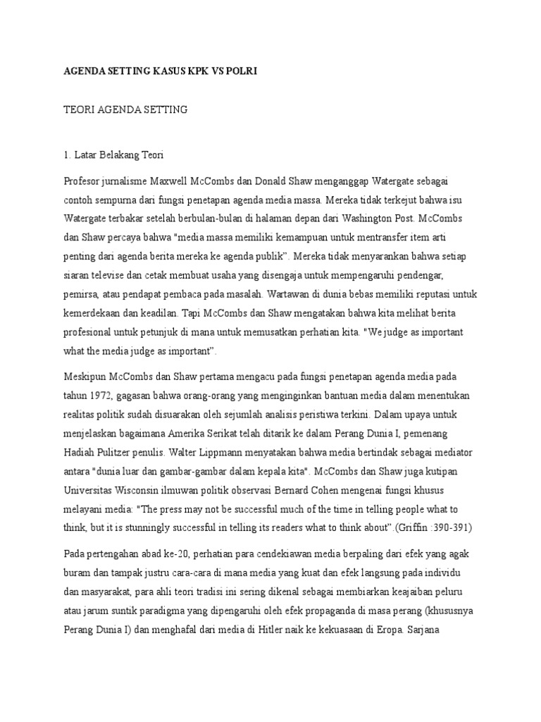 Contoh yang paling nyata adalah tayangan berita di televisi. Pdf jurnal contoh kasus teori agenda setting di me. Teori komunikasi kelas a manajemen komunikasi fakultas ilmu komunikasi universitas padjajaran 2. Berikut ini adalah download jurnal gratis yang merupakan kumpulan file dari berbagi sumber tentang pdf jurnal contoh kasus teori agenda setting di me yang bisa bapakibu gunakan dan diunduh secara gratis dengan menekan tombol download biru dibawah ini. Mereka tidak terkejut bahwa isu watergate terbakar setelah berbulan bulan di halaman depan dari washington post. Kasus tentang video mesum ariel peterpan yang.