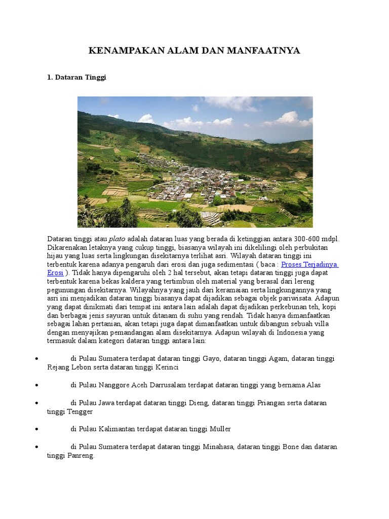 Contoh kenampakan alam dan manfaatnya. Kenampakan alam buatan berikutnya adalah tempat wisata dan peninggalan budaya. Kenampakan alam di indonesia ini terbagi menjadi 3 macam yaitu kenampakan alam daratan dan kenampakan alam perairan. Dampak pembangunan kenampakan buatan. Pegunungan gunung sungai danau bukit hutan alam teluk ujung atau tanjung dataran rendah dataran tinggi pulau laut dst. Selain kenampakan alam buatan ini juga dimaksudnya untuk menampung air hujan. Pengertian kenampakan alam kenampakan alam adalah segala sesuatu yang ada di alam dan terbentuk oleh peristiwa alam.