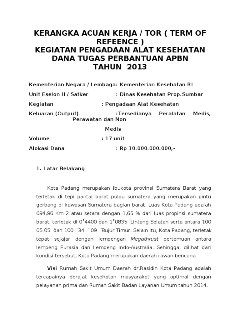 Contoh kerangka acuan kerja kak lengkap untuk semua jenis pekerjaan by nidaur rahmah kerangka acuan kerja kak atau dalam bahasa inggrisnya disebut term of reference tor adalah dokumen perencanaan kegiatan yang memuat semua penjelasanketerangan mengenai latar belakang apa mengapa siapa kapan di mana bagaimana dan berapa perkiraan biayanya suatu kegiatan. Sekolah usaha perikanan menengah kota agung nama ppk. Khaerudin hs spi msi satker. Khaerudin hs spi msi nama pekerjaan. Presiden nomor 80 tahun 2003 tentang pengadaan barang dan jasa pemerintah b gambaran umum singkat. Pengadaan laboratorium informasi teknologi tahun anggaran 2013 kerangka acuan kerja kak pekerjaan.