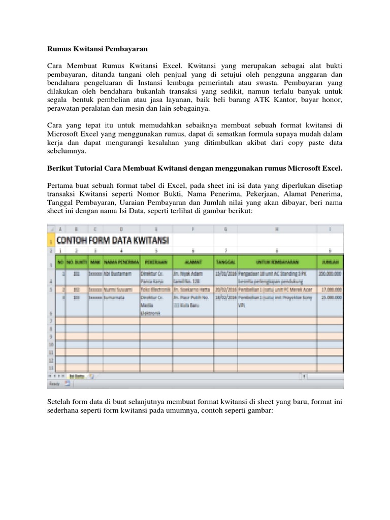Contoh kwitansi pembayaran excel. Kwitansi sangat diperlukan oleh setiap orang untuk pembuktian sebuah pembayaran biasa kita sebut hitam di atas putih. Dan apabila penjual barang atau jasa telah menerima uang sejumlah nominal tertentu dari pembeli atau pelanggan maka sudah seharusnyalah penjual berkewajiban membuat suatu kwitansi atau bukti tanda terima atas pembayaran. Salah satu cara bersosialisasi dengan orang lain yaitu dengan melakukan transaksi jual beli. Jika kita menerima uang sejumlah tertentu dari orang lain maka sebagai bukti bahwa kita telah menerima uang tersebut adalah dengan membuat kwitansi excel atau lainnya. Download contoh format kwitansi pembayaran excel sederhana sebagai bukti transaksi dengan rumus excel karena permintaan seorang teman kali ini saya membuat kwitansi pembayaran excel sederhana. Contoh kwitansi pembayaran excel dalam kehidupan sehari hari kita sebagai makhluk social tentu tidak bisa lepas dari orang lain.