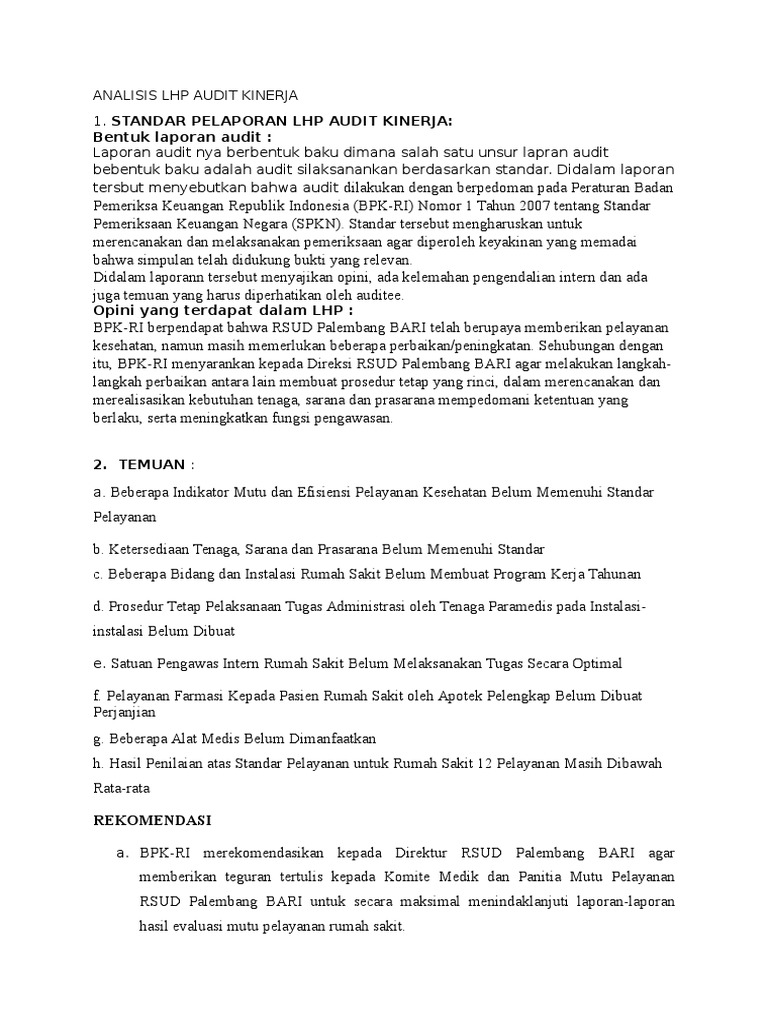 23 tahun 2005 tentang pengelolaan keuangan badan layanan umum ppk blu rsud. Menyusun laporan hasil audit investigatif yang profesional. Sementara laporan audit bentuk bab merupakan bentuk standar laporan yang berisi informasi secara lengkap yang menginformasikan dan mengkomunikasikan hasil audit kinerja contoh isi laporan audit kinerja bentuk surat dapat dilihat ilustrasi berikut ini sementara format laporan dapat mengikuti tata naskah dinas yang berlaku dimasing masing instansi. Berikut ini adalah download rpp silabus prota prosem kkm skkd ktsp 2006 sd kelas 5 yang merupakan kumpulan file dari berbagi sumber documentktsp 2006ktsp sdrpp silabus tentang contoh laporan audit kinerja yang bisa bapakibu gunakan dan diunduh secara gratis dengan menekan tombol download biru. Sentosa mengusulkan untuk dapat menjadi rumah sakit pemerintah pengguna ppk blu dan pada tahun 2009 berdasarkan kebijakan pemerintah propinsi provinsi sejahtera rsuddr.