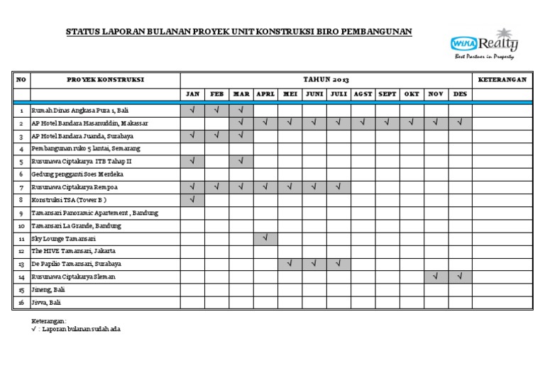 Contoh laporan bulanan proyek konstruksi. Laporan mingguan proyek merupakah sebuah pertanggung jawaban dalam bentuk tertulis mengenai kegiatan yang sudah dijalankan selama satu minggu untuk kemudian dituangkan dalam bentuk tertulis laporan mingguan ini dibuat oleh kontraktor atau konsultan. Di video ini saya akan berbagi tips dalam membuat laporan bulanan proyek kontruksidi dalamnya juga saya ajarkan cara membuat grafik kemajuan pekerjaansemoga bermanfaat httpsdrivegoogle. Contoh bentuk laporan qc quality control. Contoh laporan akhir proyek perubahan contoh laporan akhir proyek konstruksi contoh laporan akhir projek contoh laporan akhir tahun contoh laporan akhir pengawas pemilu lapangan contoh laporan akhir praktikum mpba contoh laporan keuangan contoh laporan prakerin contoh laporan kegiatan contoh laporan magang. Pengelolaan proyek dengan sistem mk disini mencakup pengelolaan teknis operasional proyek dalam bentuk masukan masukan dan atau keputusan yang berkaitan dengan teknis operasional proyek konstruksi yang mencakup seluruh tahapan proyek mulai dari persiapan perencanaan perancangan pelaksanaan dan penyerahan proyek. Aturan kajian atau konsekuensi tentang pengambilan keputusan terhadap penyelengaraan usaha terhadap lingkungan atau proyek proyek tertentu seperti konstruksi bangunan atau pengoperasian pabrik yang telah.