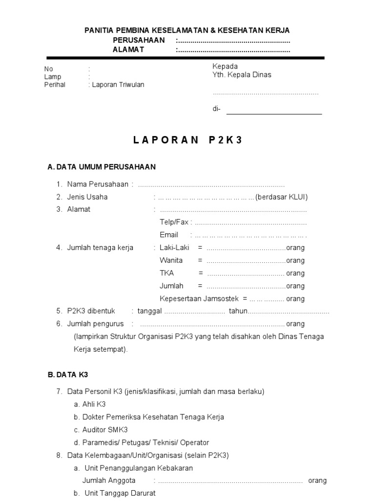 Download rpp silabus prota prosem kkm skkd ktsp 2006 sd kelas 5. Jenis usahatype of business. Adapun contoh pelatihan k3 untuk memenuhi peraturan perundangan k3 misalnya adalah pelatihan ahli k3 umum pelatihan operator k3 forklift pelatihan petugas utama k3 ruang terbatas. Media komunikasi k3 cetak. Pada umumnya laporan pelatihan k3 berisi hal hal sebagai berikut antara lain. Laporan ini digunakan untuk menyampaikan kegiatan pelatihan k3 yang dilaksanakan kepada pihak manajemen perusahaanorganisasi.