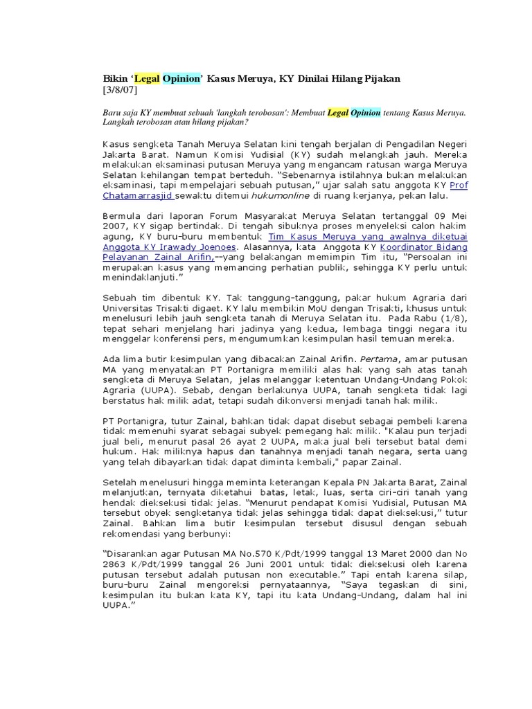 Cand saiful anam sh mh menyampaikan pendapat hukum legal opinion tentang ketentuan masa studi penyelenggaraan program sarjana s 1 dan diploma empat d iv pada ptn dan pts di indonesia sebagai berikut. Winda lestari selaku penjual tanah memberikan garansi tidak aka nada sengketa pada tanah tersebut pernyataan ini dibuat dan ditandatangani diatas materai 6000 oleh ny. Pendapat hukum legal opinion alma nurullita kasus pencurian ikan illegal fishing di perairan indonesia oleh kapal tak berkebangsaan fv viking. Inisiatif dari kementerian agraria dan tata ruangbadan pertanahan nasional kementerian. Kitik dan kebon adalah ahli waris dari sinen alias lisan. Sebidang tanah atas nama kitik bin lisan ali yang terletak di desa bambu apusceger blok siran seluas 4790 m 2 dengan girik no.