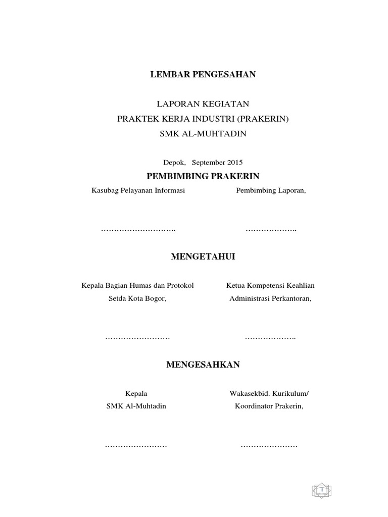 Contoh Lembar Pengesahan Laporan Pkl Smk Kumpulan Contoh
