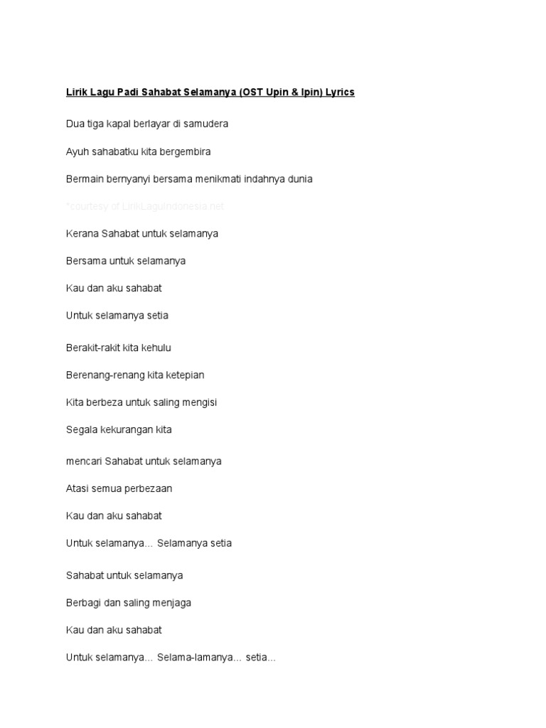 Contoh lagu bahasa inggris yang mudah untuk listening bahasa inggris. Tiap kalimat indah yang menjadi puisi ini dirangkai dengan penuh perasaan dan penghayatan untuk teman terbaik yang selalu menghiasi hari hari kita. Kamu juga bisa saling bertukar judul lagu dan penyanyi favorit masing masing. Apa sih lagu tentang persahabatan itu. Apalagi lagu ini jadi soundtrack salah satu film paling emosional laskar pelangi yang juga berkisah soal persahabatan. Lagu ini memang bukan lagu perpisahan tapi lebih ke lagu ucapan terima kasih.