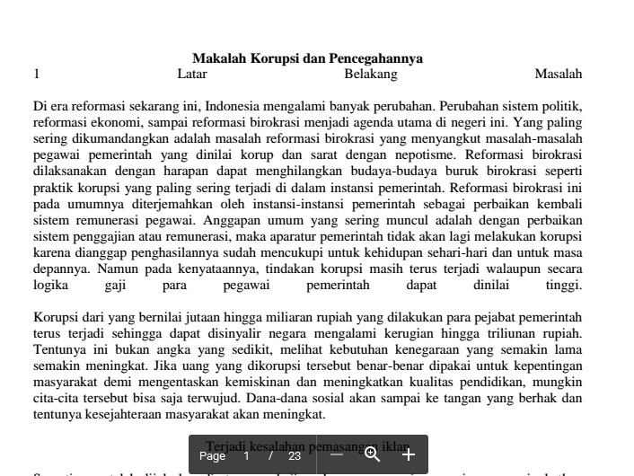 Contoh makalah tentang korupsi. Pemerintah melalui undang undang nomor 24 prp 1960 yang diikuti dengan dilaksanakannya operasi budhi dan pembentukan tim pemberantasan korupsi berdasarkan keputusan presiden nomor 228 tahun 1967 yang dipimpin langsung oleh jaksa agung belum membuahkan hasil nyata. Penulis mengucapkan terima kasih kepada semua pihak yang telah membantu dan mendukung dalam penyusunan makalah ini. Makalah masalah korupsi di indonesia 1. Apabila teman teman pengunjung blog contoh makalah mahasiswa merasa posting diatas adalah milik sobat dan keberatan jika dipublikasikan disini silakan konfirmasi melalui kolom komentar atau menghubungi kami melalui kontak admin. Posting pada s1 sma smk smp ditag 10 kasus korupsi di indonesia artikel korupsi artikel korupsi di indonesia bagaimana cara mencegah tindakan korupsi bentuk bentuk korupsi berita korupsi daerah berita korupsi tulungagung ciri ciri korupsi contoh kasus korupsi di indonesia 2017 contoh korupsi dampak korupsi data icw tentang korupsi 2018 data korupsi di indonesia 2019 gejala. Masalah korupsi di indonesia makalah ini dibuat dalam rangka memenuhi mata kuliah kewarganegaraan disusun oleh.