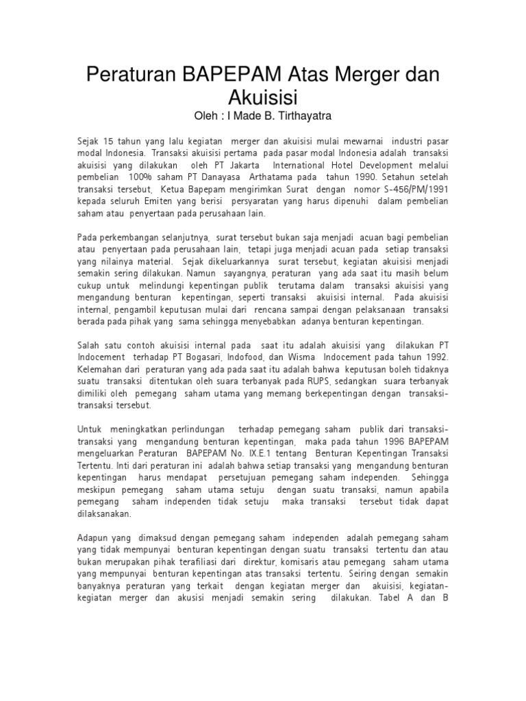 Contoh merger dan akuisisi. Proses akuisisi dapat dilakukan baik yang memiliki kesamaan bidang usaha atau tidak memiliki kesamaan kegiatan usaha ataupun dari segi keterkaitan konsumen. Tetapi saya hanya dapat list dri tahun 2010 2013 di sini. Merger adalah proses penggabungan antara dua atau lebih perusahaan dan hanya ada satu perusahaan yang dipertahankan. Saya membutuhkan list perusahaan yang melakukan merger atau akuisisi periode 2002 2013. Sedangkan kekurangan dari melakukan merger dibanding dengan jenis pengambil alihan lainnya seperti akuisisi yaitu harus terdapat persetujuan antara pemegang saham masing masing perusahaan padahal agar dapat mendapatkan persetujuan tersebut diperlukan waktu yang tidak singkat. Perbedaan dasar antara merger akuisisi dan konsolidasi.