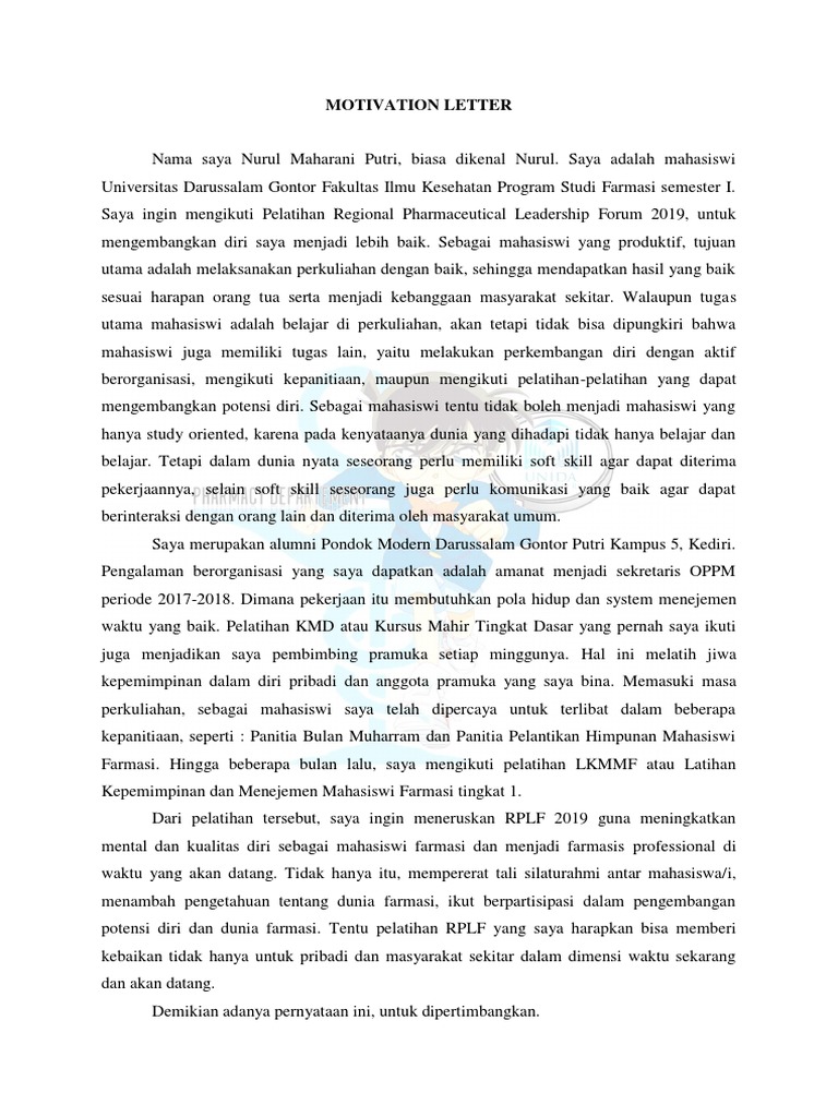 Akan tetapi ibu tetap berusaha membantu ayah dengan menjual sembako di kios rumah kami walaupun hasilnya tak seberapa setidaknya cukup untuk memenuhi kebutuhan. Contoh motivation letter ikut organisasi penulis muhammad cahyo. 5 cara dan contoh membuat motivation letter dalam melamar kerja dan beasiswa siapa yang tak mengenal motivation letter.