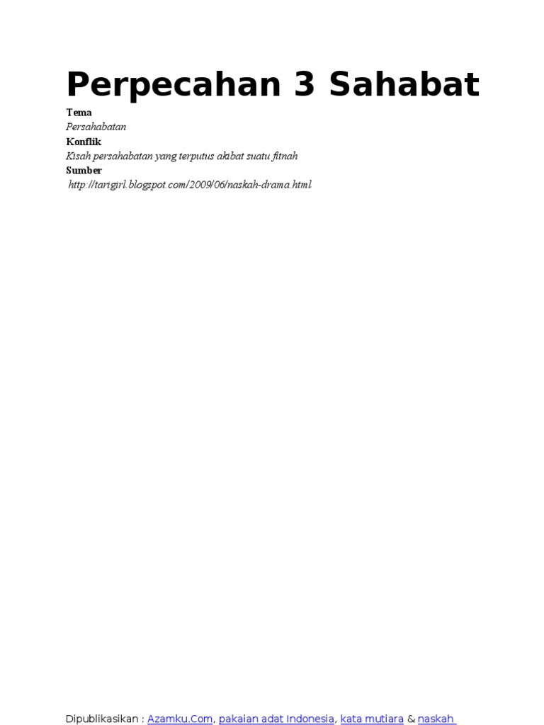 Den kamu harus minta maaf pada rendi atas apa yang telah kamu perbuat. Untuk contoh teks drama sendiri sudah sangat beragam jenisnya. Contoh naskah drama persahabatan enam orang sumber. Beragam contoh ini karena saat ini banyak sekali yang membutuhkannya apa lagi anak sekolah yang. Sedangkan teks drama merupakan naskah yang berisikan jalan cerita serta arahan sebuah drama yang akan dipentaskan. Persahabatan friendship karakter.