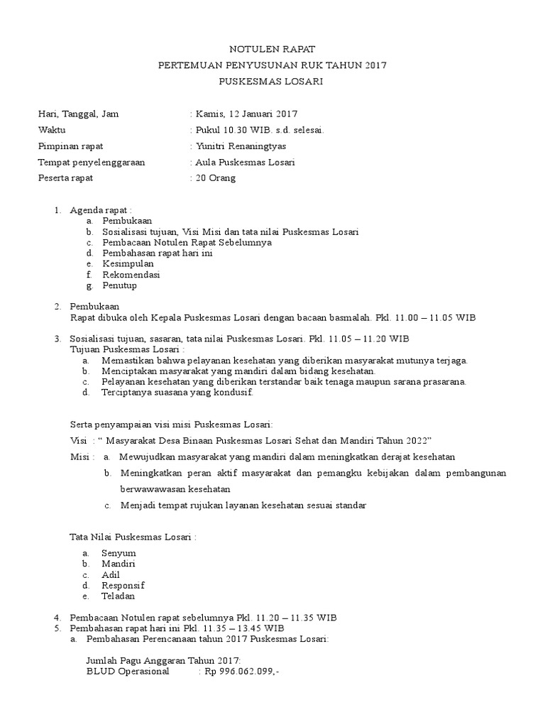 Usulan dan tanggapan dari semua peserta rapat. Contoh notulen yang benar untuk anda yang terbiasa melakukan kegiatan berorganisasi seperti seminar diskusi maupun rapat tentu sudah tidak asing lagi dengan yang namanya notulen dan berita acaraunuk masalah berita acara rapat sudah pernah kita bahas di postingan sebelumnya oleh sebab itu kali ini kita akan membahas cara membuat notulen yang baik dan benar. Ahmad muttaqin ketua arif hidayat sekretaris sony susandra anggota safrudin aziz rofina dienasari isi notulen rapat. 20 29 april 2015 agenda. Rumusan visi misi dan tujuan sekolah. Satuan biaya operasional perguruan tinggi dan rencana penerimaan ptn bh.