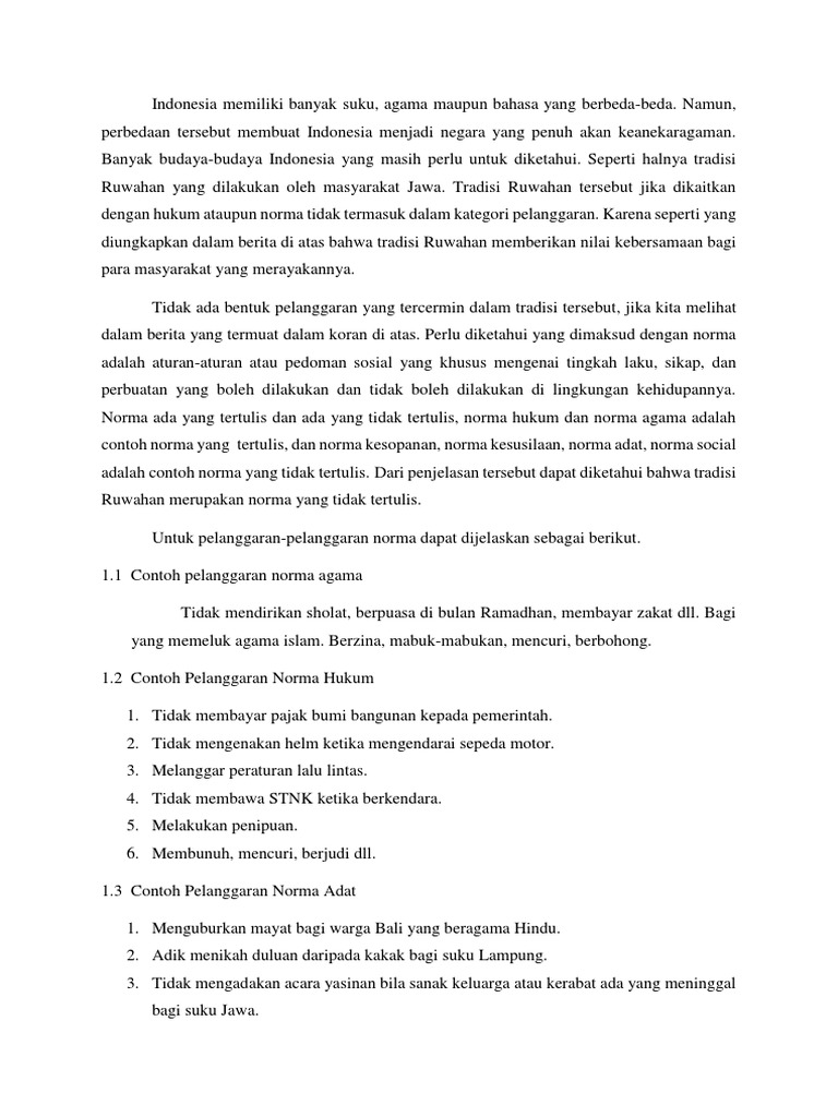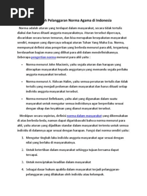 Contoh pelanggaran norma agama. Di atas hanya contoh pelanggaran yang aling umum dan paling banyak dilakukan orang. Banyak manusia melanggar norma agama tidak terkecuali di indonesia. Akibatnya si pelanggar akan mendapat hukuman dari tuhan di akhiran nanti. Pelanggaran pelanggaran terhadap norma kesusilaan tersebut dapat terjadi karena beberapa hal yaitu. Penyebab pelanggaran norma kesusilaan. Norma agama bersumber dari tuhan yang dimuat dalam kitab suci agama tertentu.