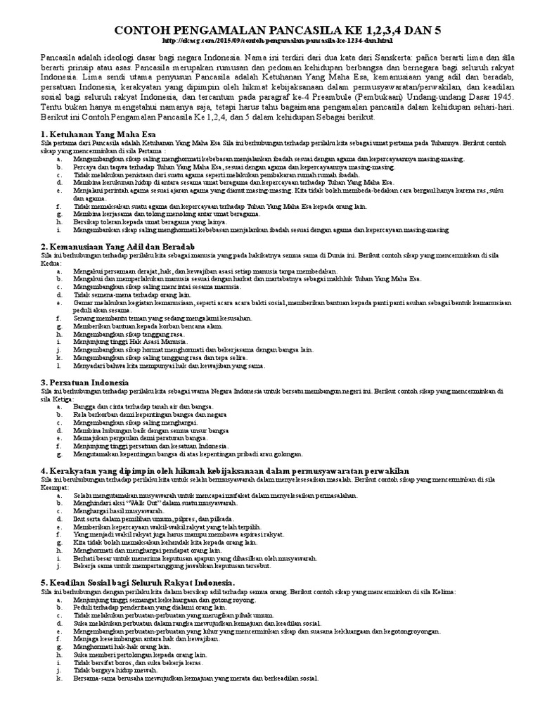 Contoh pengamalan pancasila sila ke 1 2 3 4 5. Setiap orang wajib melaksanakan dan mengamalkan isi dari pancasila dari hal ketuhanan kemanusiaan persatuan kerakyatan dan keadilan. Butir butir pedoman tersebut merupakan penjabaran dari kelima sila dalam pancasila. Pengamalan sila ke 3 di rumah. Contoh sikap sila ke 2. Pancasila adalah dasar sudut pandang bagi warga negara bangsa indonesia. Menjaga ketertiban dunia 7.