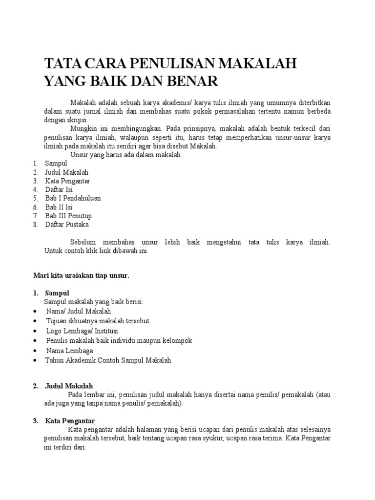 Contoh penulisan makalah yang baik dan benar. 12 ruang lingkup penelitian penelitian ini akan mencakup cara membuat makalah yang baik dan benar dengan memperhatikan tanda tanda baca cara penulisan tata bahasa yang baik dan benar. Demikian pembahasan tentang contoh susunan makalah lengkap yang baik dan benar mudah mudahan bisa membantu dan bermanfaat bagi anda yang sedang menyusun makalah untuk kegiatan pembelajaran di sekolah perguruan tinggi ataupun di mana saja anda menuntut ilmu. Banyak juga pelajar dan mahasiswa yang sudah sering membuat contoh makalah namun belum mengerti bagaimana makalah yang baik dan benar. Untuk contoh daftar pustaka harus diperhatikan cara penulisan yang baik dan benar silahkan lihat contohnya di bawah ini. Atau malah bingung bagaimana cara penulisan makalah yang baik dan benar. Daftar isi menjadi bagian yang sangat penting dari sebuah penulisan baik itu untuk karya tulis dalam bentuk skripsi karya ilmiah makalah dan lain lain.