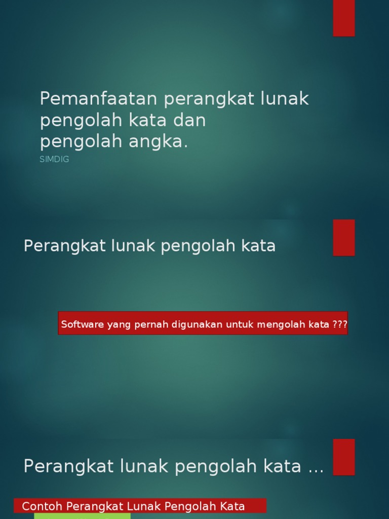 Pengertian perangkat aplikasi pengolah angka adalah program yang difungsikan untuk mengolah data berupa angka. Perangkat lunak software adalah istilah khusus untuk data yang diformat dan disimpan secara digital didalamnya termasuk program komputer dokumentasinya dan berbagai informasi yang dapat dibaca dan ditulis oleh komputerperangkat lunak juga dapat dikatakan sebagai bagian sistem komputer yang tidak berwujud. Istilah ini digunakan untuk menonjolkan perbedaannya dengan hardware perangkat. Macam macam perangkat lunak aplikasi pengolahan kata.