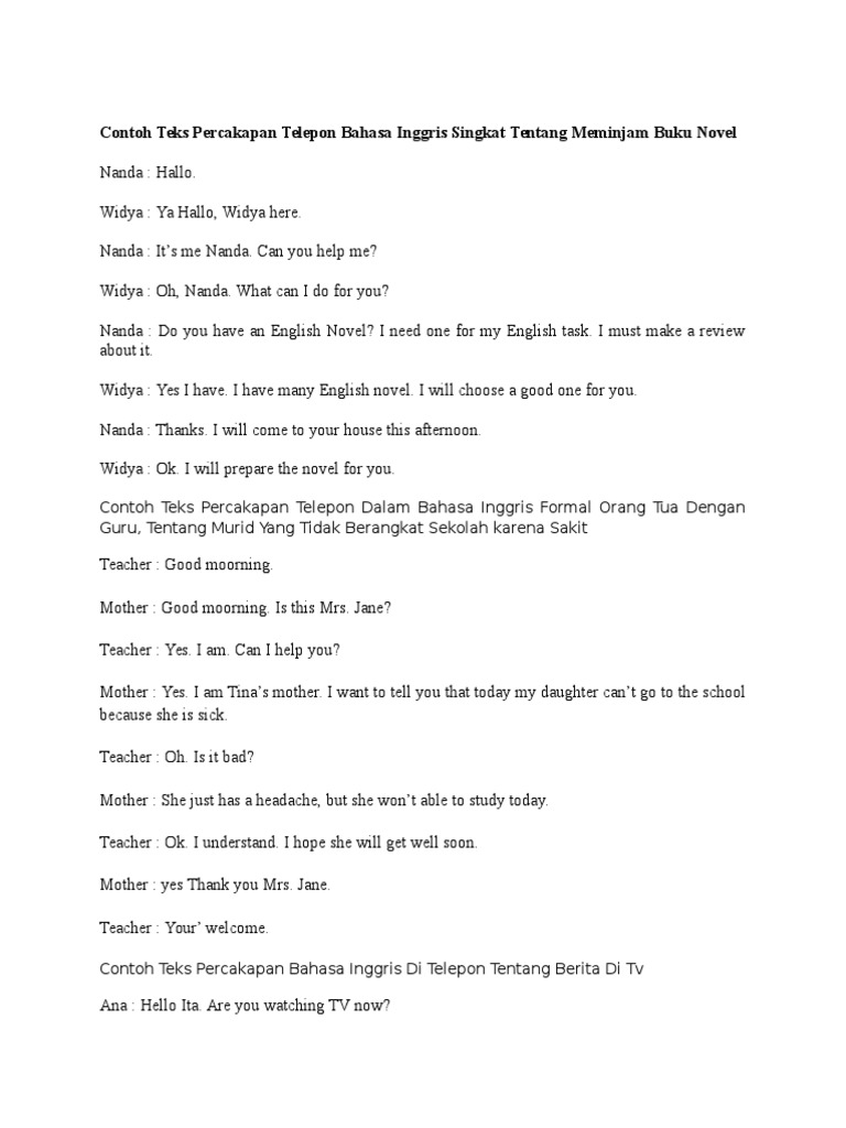 Dalam materi kali ini kita akan menyimak beberapa contoh percakapan singkat dalam bahasa inggris yang terjadi melalui telepon antara kawan yang telah lama tidak berjumpa. Untuk anda yang sedang mencari dan membutuhkan percakapan sekretaris dalam telepon berikut ini saya berikan dalam bahasa indonesia dan bahasa inggris. This is shinta. Bahkan untuk mengurangi rasa grogi atau kurang pede sahabat dapat melakukan percakapannya dengan menggunakan bantuan telepon atau hp. Kita sebenarnya sudah belajar bahasa inggris sejak kecil bahkan sekarang anak tk pun sudah ada mulai. Apakah ini taeyeon kim.
