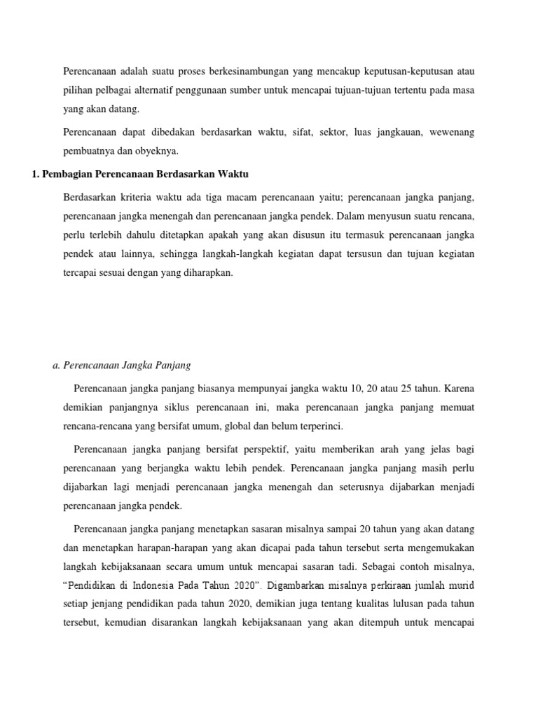 Dengan mengetahui dan menyadari masing masing kebutuhan tersebut kita bisa mulai merencanakan dan menentukan instrumen investasi apa yang cocok untuk masing masing kebutuhan tersebut. Jangka panjang jangka menengah jangka pendek pentingnya perencanaan perencanaan bisnis merupakan aspek penting dari pertumbuhan bisnis apakah mereka rencana jangka pendek yang dapat diperoleh dalam beberapa minggu atau rencana jangka panjang yang mengambil 10 tahun atau lebih untuk melaksanakan. Perencanaan kebutuhan pokok kita tiap hari atau tiap minggu. Kebutuhan jangka pendek masih bisa dibagi. Contoh program kerja jangka panjang pada lampiran 3 dan contoh program tahunan pada lampiran 4. Contoh rencana jangka panjang menengah dan pendek organisasi studi kasus divisi pelayanan dan dakwah masjid salman itb rencana jangka panjang divisi pelayanan dan dakwah masjid salman itb 3 5 tahun.