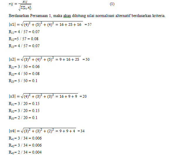 Contoh kasus perhitungan manual metode topsis lsd. Buat sebuah matriks xij yang terdiri atas m alternatif dan n kriteria. Topsis technique for others reference by similarity to ideal solution adalah salah satu metode pengambilan keputusan multikriteria yang pertama kali diperkenalkan oleh yoon dan hwang 1981topsis menggunakan prinsip bahwa alternatif yang terpilih harus mempunyai jarak terdekat dari solusi ideal positif dan terjauh dari solusi ideal negatif dari sudut pandang geometris dengan menggunakan. Metode topsis ini metode yang cukup panjang diimplementasikan menjadi aplikasi atau program untuk contoh perhitungan manual dan source code dapat dilihat disini contoh aplikasi metode topsis beserta perhitungan manualnya. Sekolah menengah kejuruan smk negeri 1 boyolali sedang melakukan proses seleksi pemilihan guru teladan dengan mengolah hasil nilai terhadap tiga guru. Topsis adalah metode pengambilan keputusan multikriteria yang pertama kali diperkenalkan oleh yoon dan hwang tahun 1981.