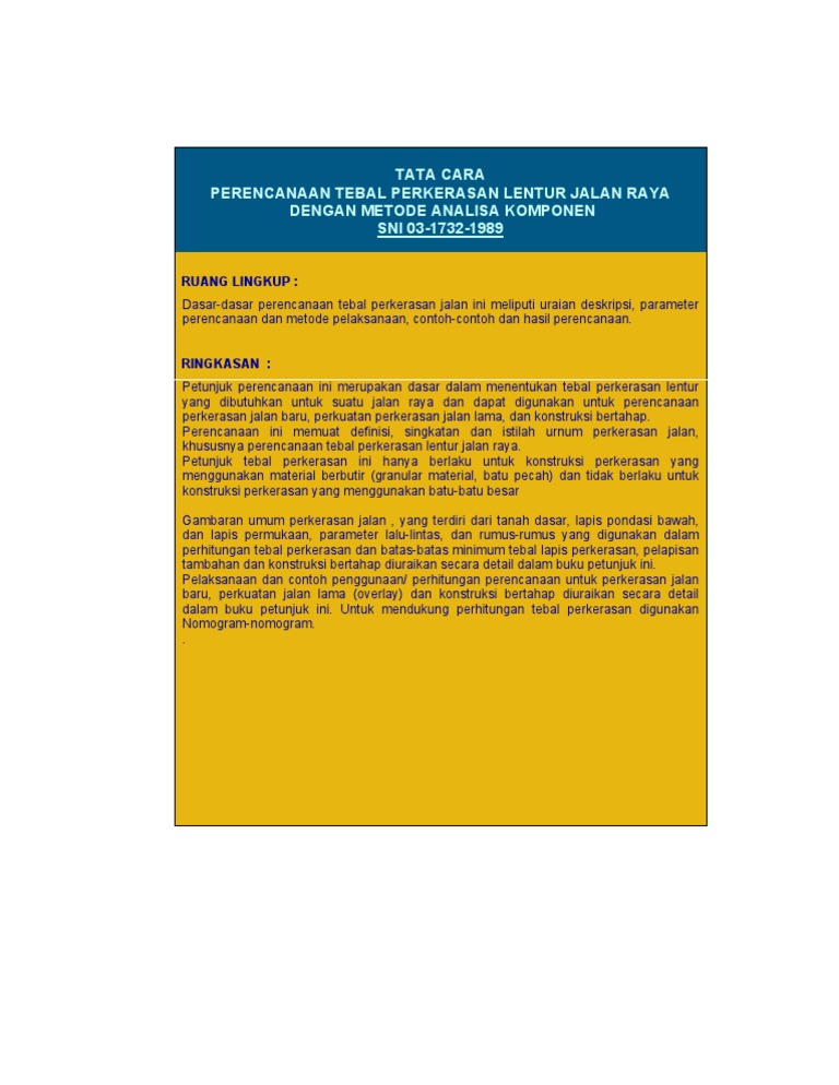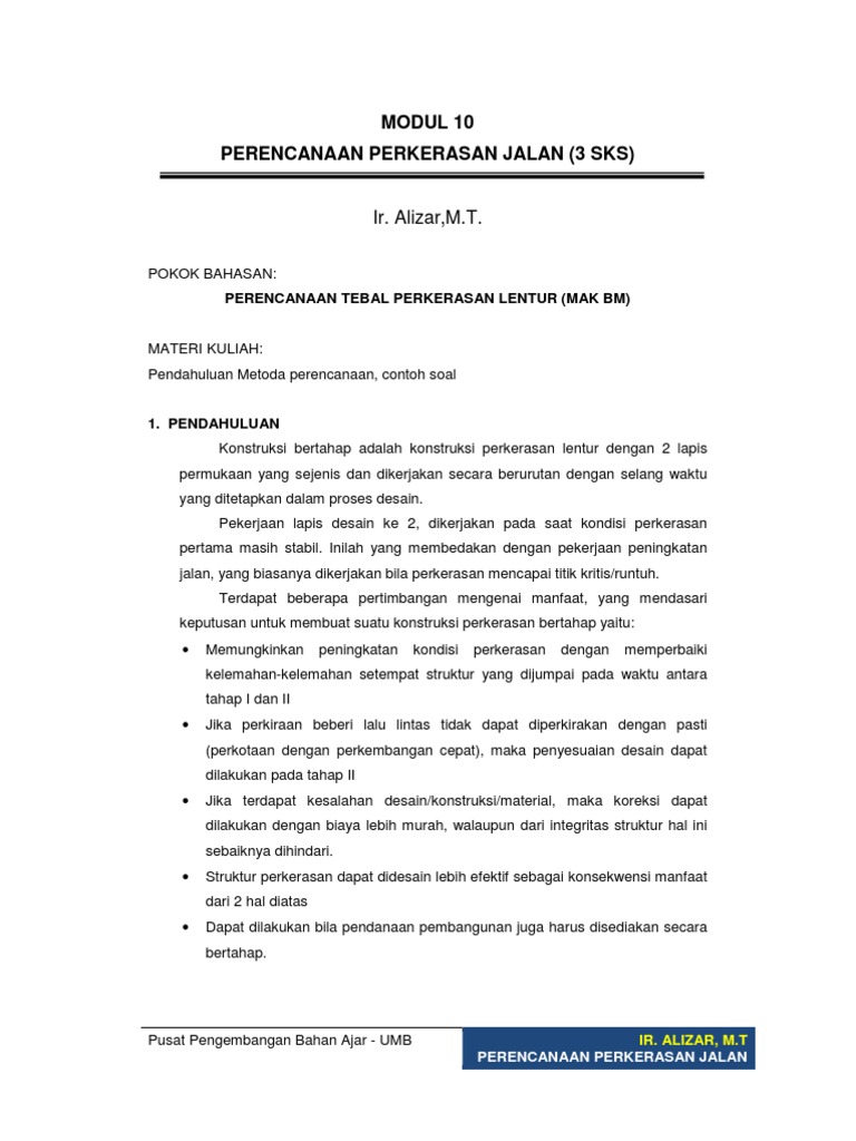 Komposisi kendaraan awal umur rencana pada tahun 2009. Arie setiadi moerwanto msc juni 2017 silahkan unduh berkas di bawah ini. Dalam konstruksi perkerasan kaku plat beton sering disebut sebagai lapis pondasi karena dimungkinkan masih adanya lapisan aspal beton di atasnya yang berfungsi sebagai lapis permukaan. Untuk itu praktisi perkerasan jalan didorong untuk. Desain perkerasan pd t 01 2002 b dan software desain perencanaan jalan perkerasan lentur sdpjl untuk perkerasan lentur dan dengan desain 14 pd t 2003 untuk desain perkerasan kaku. Lampiran 1 contoh perhitungan tebal perkerasan lentur metode aashto 1993.