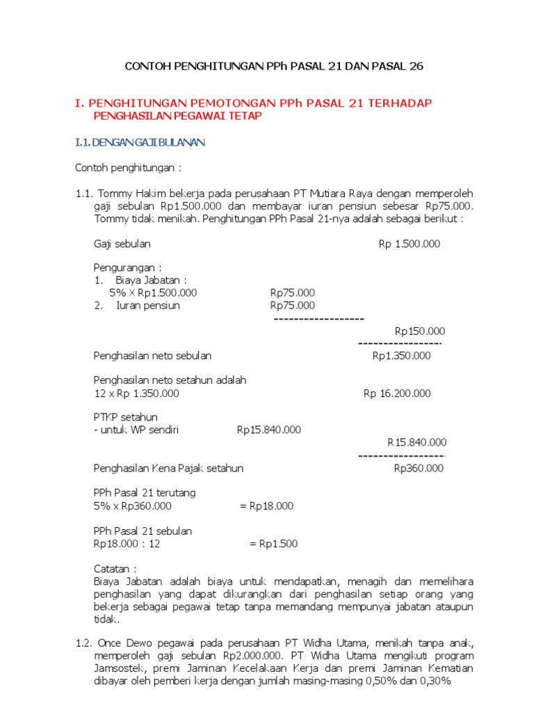Contoh perhitungan pph pasal 26. Badan usaha apapun di indonesia yang melakukan transaksi pembayaran gaji bunga dividen royalti dan lain sejenisnya kepada wajib pajak luar negeri diwajibkan untuk membayar pph pasal 26 atas transaksi tersebut. Pada bulan april 2015 messi menjual seluruh sahamnya senilai rp5000000000 kepada cristiano ronaldo warga negara portugal. Agar kamu lebih mudah memahami cara perhitungan pph 26 yuk kita simak contoh contoh berikut. Atasi stres kamu ditempat kerja dengan cara ini ilustrasi penghitungan pph pasal 26. Pemotongan pph pasal 21 atas penghasilan sehubungan dengan pekerjaan jasa atau kegiatan dengan nama dan dalam bentuk apa pun yang diterima atau diperoleh wajib pajak orang pribadi dalam negeri wajib dilakukan oleh. Untuk contoh contoh selanjutnya diasumsikan penerima penghasilan yang dipotong pph pasal 21 sudah memiliki npwp kecuali disebut lain dalam contoh tersebut.