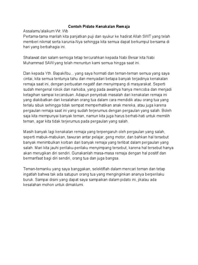 Pidato singkat tentang kenakalan remaja solusi penyelesaian kerangka lengkap hallo sahabat pembaca semua yang budiman pada kesempatan kali ini kita akan membahas makalah tentang pidato singkat tentang kenakalan remaja solusi penyelesaian kerangka lengkappidato biasanya disampaikan di depan umum dengan membawa teks pidato. Jika sebelumnya mamikos sudah membahas contoh pidato singkat tentang pergaulan bebas kali ini mamikos akan memberikan contoh pidato singkat tentang kenakalan remaja serta naskah pidato panjang tentang kenakalan remaja yang bisa membantu anda dalam membuat sebuah teks pidato singkat lucu tentang. Artikel makalah tentang pidato tentang kenakalan remaja meliputi dari pengertian tujuan manfaat penyebab sikap teks contoh dan gambar suoaya mudah di pahami. Adapun contoh pidato singkat tentang kenakalan remaja adalah sebagai berikut. Contoh pidato tentang kenakalan remaja. Contoh teks pidato dengan tema pergaulan remaja.