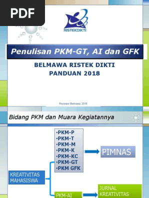 72 tujuan tujuan dari kegiatan pkm ai adalah menumbuh kembangkan minat dan kemampuan menulis ilmiah mahasiswa. Ok silahkan pilih contoh proposal pkm yang sekiranya menarik untuk dijadikan referensi. Sebagaimana pembidangan dalam 5 lima pkm lain pkm ai menganut pembagian bidang yang sama. Bukan hanya 5 contoh proposal pkm itu saja ada juga contoh proposal pkm ai artikel ilmiah serta contoh proposal pkm gt gagasan tertulis. Proposal di bawah ini adalah proposal pkm tahun tahun sebelumnya hanya untuk referensi secara substansi isi kerangka jangan dicontoh karena menggunakan panduan lamalihat di menu download untuk pedoman dan kerangka pkm yang terbaru. Pkmm pkmgt pkmt pkmp pkmkc pkm ai.