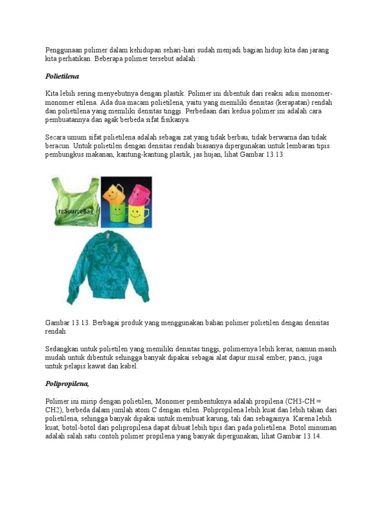 Contoh soal jawaban gaya gerak listrik ggl kumparan solenoida toroida energi penerapan aplikasi. Jenis jenis polimer dan kegunaannya dalam kehidupan sehari hari kimia beberapa polimer dan kegunaannya adalah sebagai berikut. Sebenarnya penggunaan polimer dalam kehidupan sehari hari sering kali dilakukan oleh hampir semua orang namun hanya saja kita sendiri yang kurang memperhatikan apa itu contoh penggunaan polimer dalam kehidupan sehari hari dibahas dengan jelas disini semoga bermanfaat. Dengan semakin meningkatnya kebutuhan akan ban mobil dan motor ahli ahli kimia organic telah mengembangkan pembuatan karet sintetis untuk mempercepat perolehan kebutuhan. Kehidupan manusia tidak dapat terlepas dari penggunaan polimer karena material ini juga sangat berpotensi untuk menggantikan penggunaan material konvensional seperti besi kayu dan lain sebagainya. Jenis jenis polimer dan kegunaannya dalam kehidupan sehari hari kimia.
