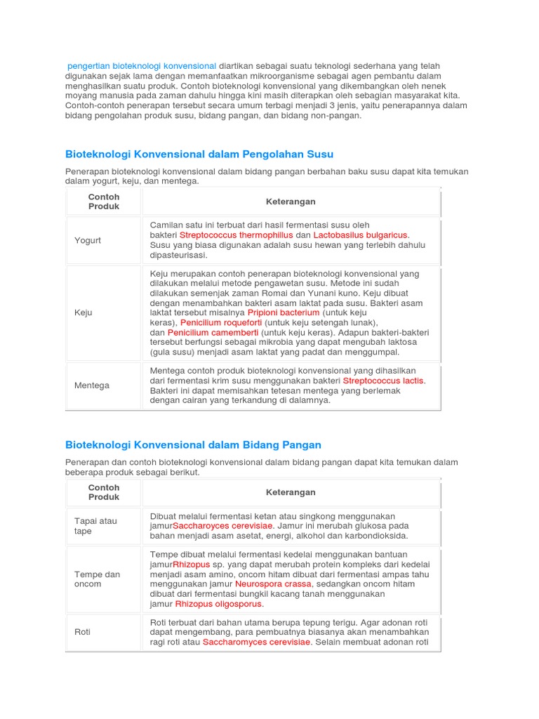 Contoh produk bioteknologi konvensional. Tempe diproduksi dari proses fermentasi kedelai menggunakan jamur jamur dari genus rhizoporus misalnya r. Selanjutnya contoh lain bioteknologi konvensional adalah tempe. Tempe tempe merupakan salah satu contoh produk bioteknologi konvensional yang sudah dikenal luas di masyarakat kita. Tempe adalah lauk dengan protein tinggi. Bioteknologi konvensional dalam pengolahan susu penerapan bioteknologi konvensional dalam bidang pangan berbahan baku susu dapat kita temukan dalam yogurt keju dan mentega. Tempe termasuk produk bioteknologi yang menggunakan kedelai.