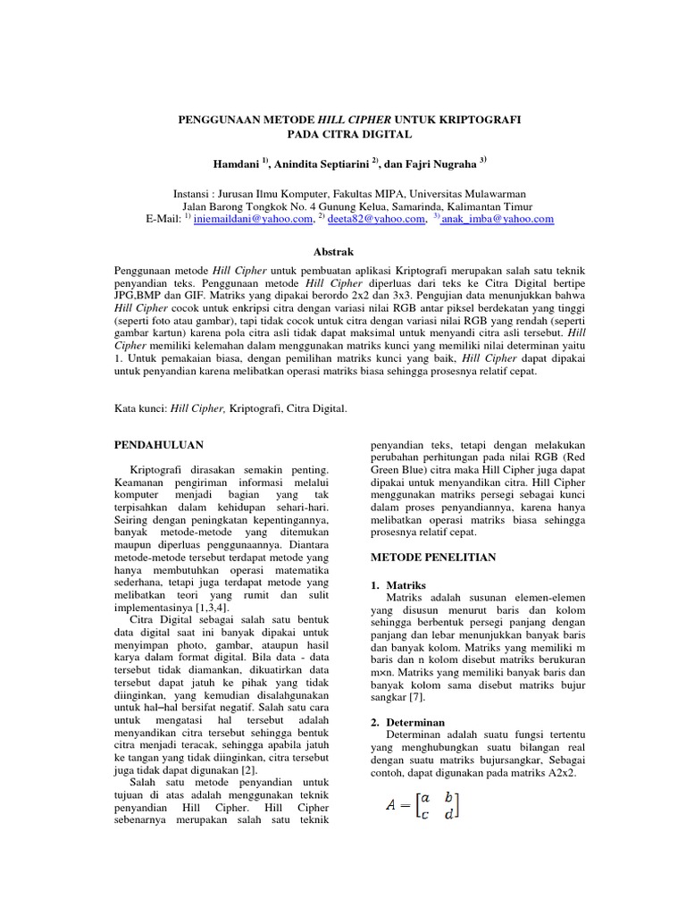 Semoga bermanfaat bila ada kekurangan dan kesalahan mohon maaf yang sebesar besarnya. Pesan yang akan dikirim ditulis horizontal baris per baris. Kriptografi cryptography berasal dari bahasa yunani terdiri dari dua suku kata yaitu kripto dan graphiakripto artinya menyembunyikan sedangkan graphia artinya tulisan. Contoh program ini menggunakan aplikasi matlab 74. Demikian contoh program php menggunakan if yang diambil dari hasi review buku dasar pemrograman web dinamis menggunakan php karya abdul kadir. Alat ini terdiri dari sebuah pita panjang dari daun papyrus yang dililitkan pada sebatang silinder.